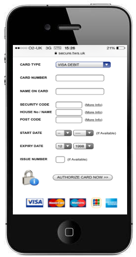 Allow your customers to pay via Credit or Debit card using Total Web Solutions secure PayPage. Include mobile PayPage for responsive websites and 3D Secure (Verified by Visa, MasterCard SecureCode and American Express Safekey) for extra protection against chargeback and fraud. Peace of mind for you and your customers.